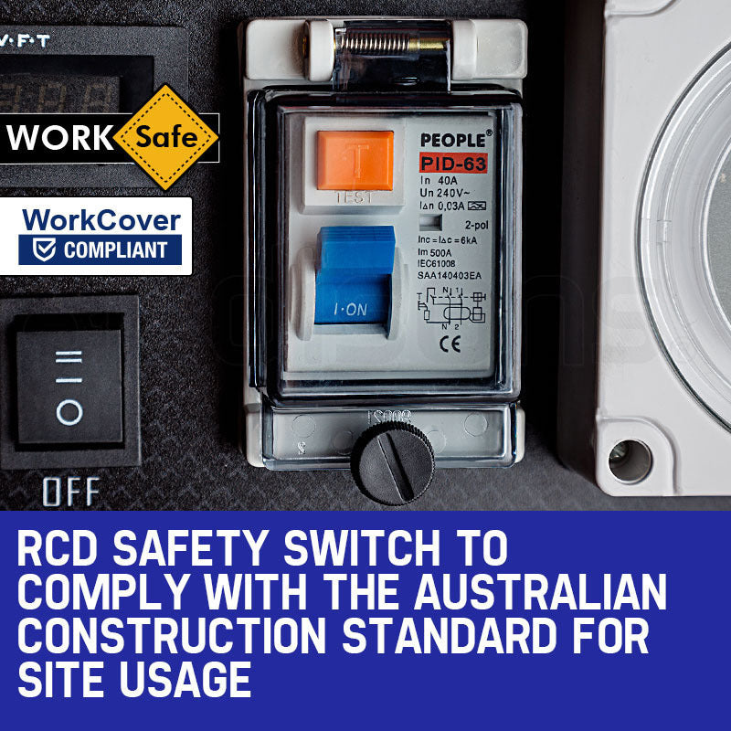With an RCD Safety switch and external earth point the GX12025i is WorkCover compliant. Meeting the Australian Construction Standard this WorkSafe spec model is ideally suited to providing dependable power to construction and mining sites trade shows and special events. Ita€™s simple for anyone on site to get it going thanks to a convenient starting guide and the ease of push button Electric Start.
