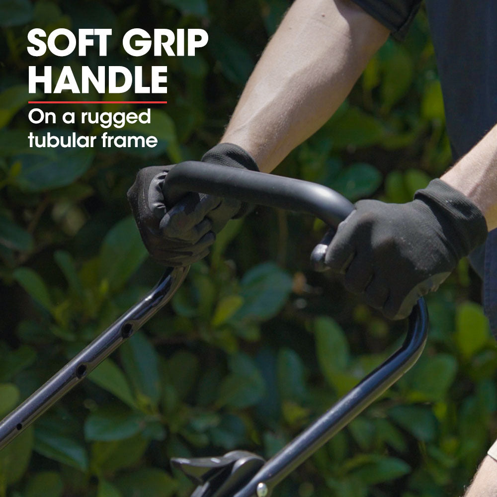 Mowing won't be a chore withstrong>oversized wheels to glide over the terrain and the lightweightstrong>grass catcher.