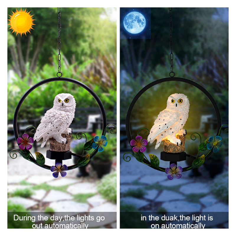 Led Solar Owl Shape Night Light Hanging Lamp For Courtyard Decoration White Outdoor Lighting Accessories