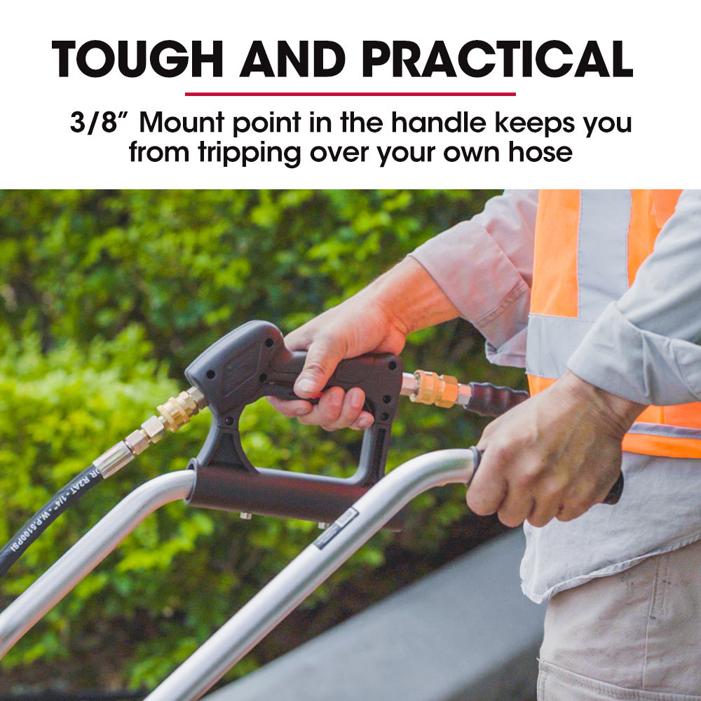 It has a standard #8540;' quick connect fitting for use with most pressure washers. A minimum operating pressure of 2000 PSI @ 11 LPM ensures fast effective cleaning. That means you save water by saving time.