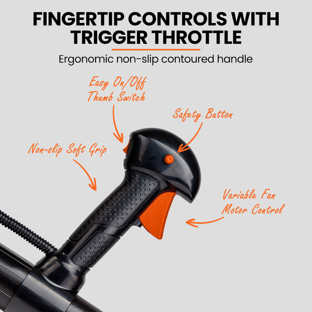 Thanks to the included interchangeable work heads you can clear out everywhere from driveways to garden beds. A super flexible air outlet gives you optimal reach and with a sensitive trigger you can always apply just the right power to blow away even the biggest maintenance chores. So stop toiling with that broom and rake - order your MTM at today and employ the winds of change!