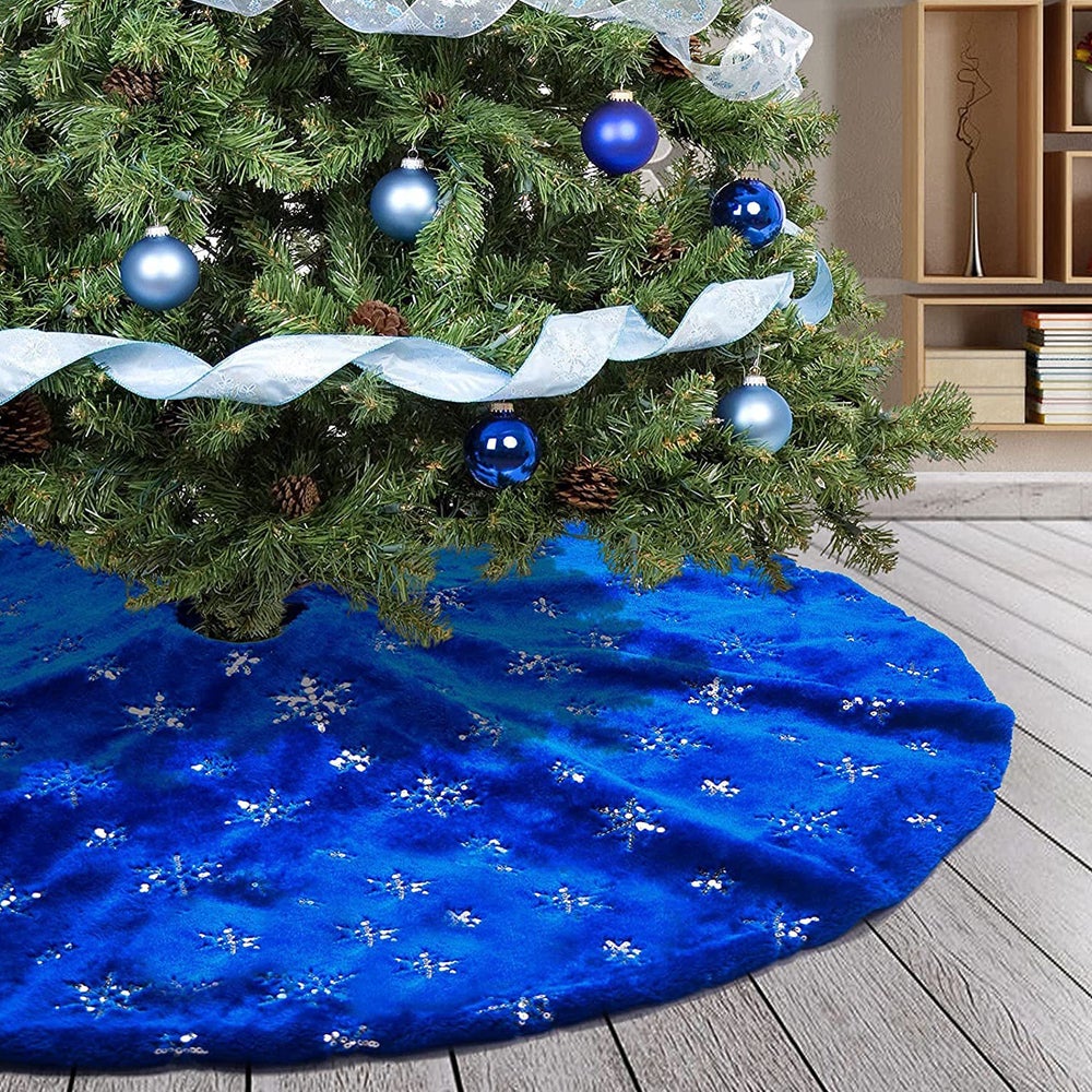 Blue Christmas Plush Tree Skirt With Silver Sequin Snowflake Xmas Decorations Seasonal Decorations