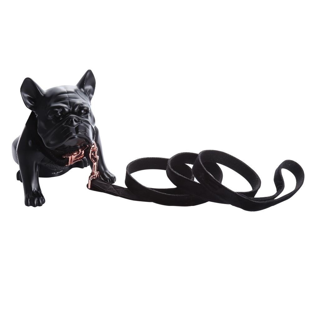 Midnight Black Velvet Dog Collar Leash Set Leads & Head Collars