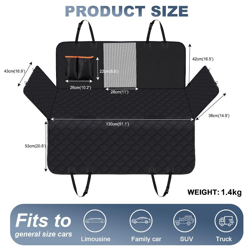 Keep Your Car Clean And Your Furry Friend Comfortable With This Waterproof Dog car seat Cover! This Durable Scratchproof Cover Protects Your Backseat From Dirt Spills Fur And Muddy Paws. Featuring Side Flaps For Extra Protection And A Non-Slip Surface To Keep Your Pet Secure This Cover Is Perfect For Cars Trucks And Suvs. Easy To Install And Clean It's A Must-Have For Any Pet Owner On The Go!