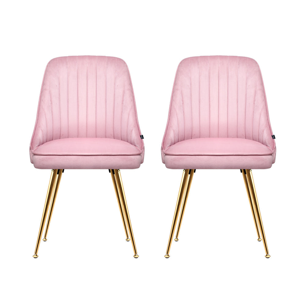 Artiss Set Of 2 Velvet Channel Tufted Pink Dining Chairs