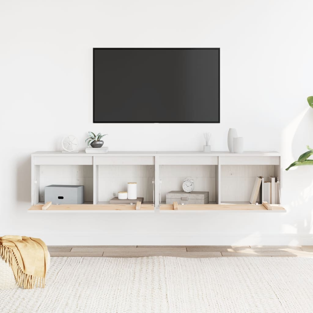 Wall Cabinets 2 Pcs White 80X30x35 Cm Solid Wood Pine Cabinets & Cupboards