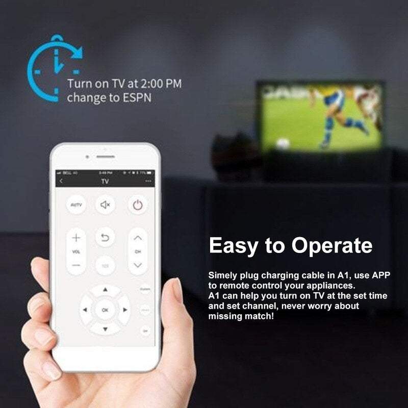[Easy To Install]: Simply Plug Charging Cable In A1 Download The App To Your Phone When You Set Up Successfully Point The Controller To Your Appliances Then It Will Work.