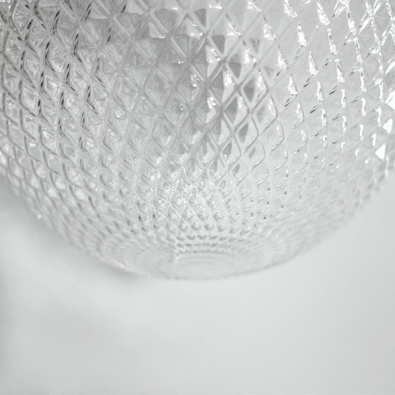 The Casablance Pendant Light Offers A Classic Spherical Design That Scatters Light Via A Dimpled Diamond Glass Cover. The Ceiling Mount And Main Fixture Feature A Striking Chrome Finish From Which The Sphere Hangs.