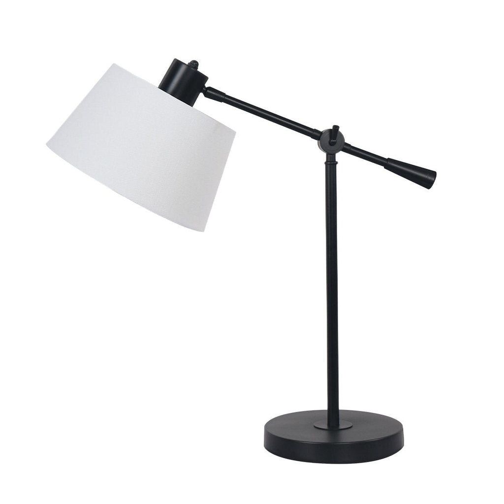 Introducing The Sarantino Metal Table Lamp A Perfect Addition To Any Contemporary Living Space. Illuminate Your Space With Precision Using The Lamp's Arm Offering A 15-Degree Swing For Tailored Lighting. Crafted With A Sleek Black Metal Finish This Lamp Boasts Rust Resistance For Lasting Allure. Complemented By A Pristine White Linen Fabric Shade It Exudes Timeless Charm. Elevate Your Room's Ambiance With This Versatile And Durable Lighting Piece.