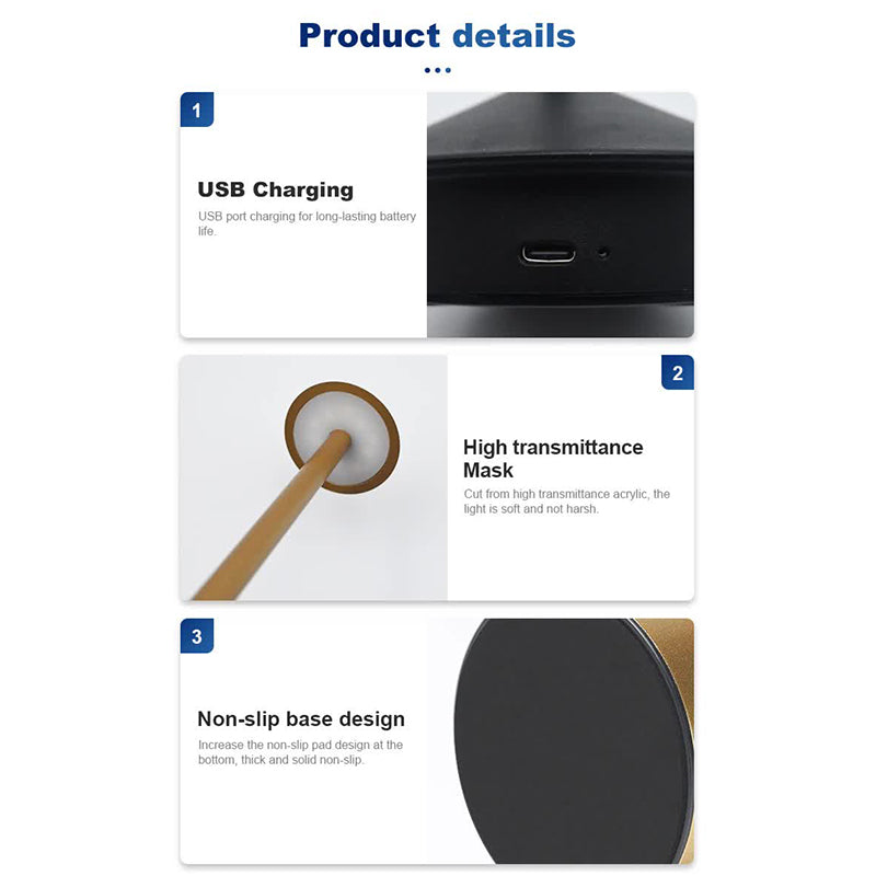 H2>Modern Minimalist Aluminum Led Mushroom Night Light P>This Creative Mushroom-Style Night Light Combines Modern Minimalist Aesthetics With Practical Lighting For Any Room. Perfect For Bedside Dining Room Or Ambiance Lighting Its Sleek Aluminum Design Adds Elegance And Warmth To Your Space. H3>Product Features Ul> Li> Material: Durable Aluminum With An Acrylic Lampshade For A 90% Light Transmission Rate. Li> Lighting: 3W Led Light With Brightness For Tailored Ambiance. Li> Control: Touch-Sensitive Switch With Long-Press Dimming Feature. Li> Power Supply: Convenient Type-C Rechargeable Interface Eliminating Cord Constraints. Li> Design: Anti-Slip Base Ensures Stability And Prevents Damage To Surfaces. Li> Size: Compact 10.5Cm X 30Cm Lightweight At 340G. Li> Lighting Modes: Choose Between Warm Light Cool Light And Neutral Tones For Versatile Use. /Ul> H3>Versatile Applications P>Whether You're Reading Dining Or Creating A Relaxing This Mushroom Night Light Enhances Your Experience With Its Soft Glow And Stylish Design. H3> P> Ul> /Ul> H3> P> P>