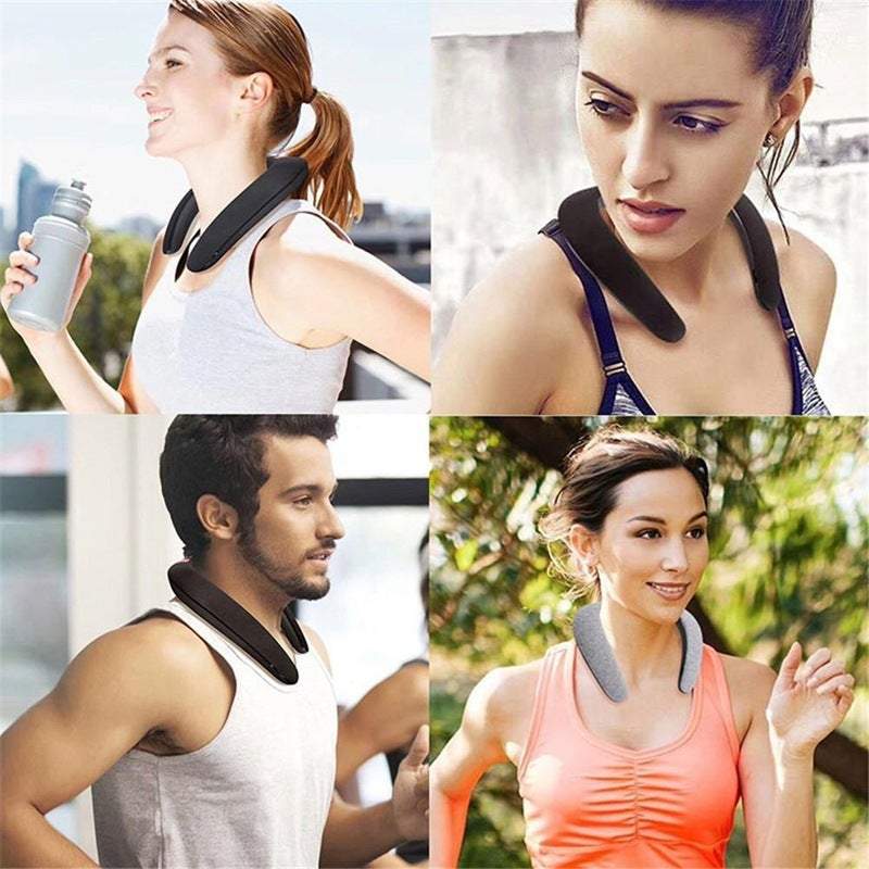 Wearable Neck Mounted Bluetooth Portable Wireless 5D Stereo Bass Grey Audio Docks & Mini Speakers