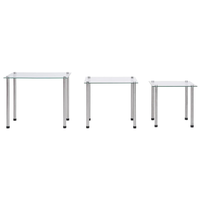 Instantly Add An Impressive Modern Touch To Your Living Space With These Contemporary And Practical Nesting Tables! Made Of Thick Tempered Glass And Stainless Steel Legs This Set Of 3 Nesting Tables Is Exceedingly Sturdy And Safe. The Tabletop Can Accommodate Books Magazines Fruit Baskets Or Other Small Items You'd Like To Keep Within Reach. The Smooth Surface Is Easy To Clean With Only A Damp Cloth. You Can Stagger Or Separate The Tables To Meet Your Multiple Needs And Nest Them Together To Save Space When Not In Use.