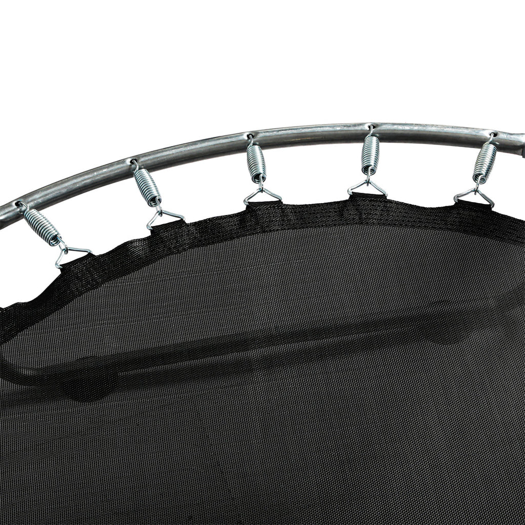 For Safety the trampoline features a fully enclosed mesh net that surrounds the jumping area keeping Kids protected during every bounce. The silent suction pads on the U-shaped base offer a quiet secure grip on any floor preventing slips or noise disruptions—ideal for both indoor floors and outdoor surfaces.