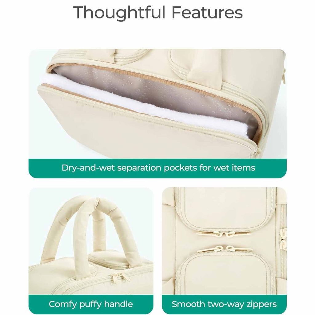 White Puffy Travel Wash Bag With Wide Mouth Access And Wet Dry Pockets Other Luggage