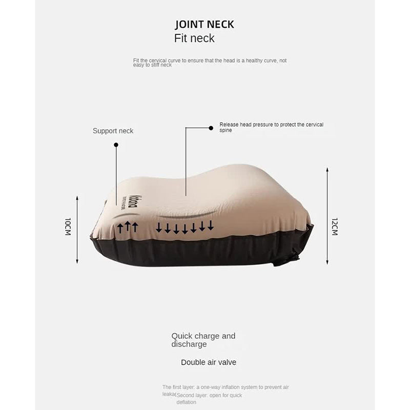 Our pillow combines innovative design with practical functionality offering a seamless blend of comfort and convenience. The automatic inflation feature saves you time while the ergonomic structure ensures you wake up refreshed and ready for your next adventure.