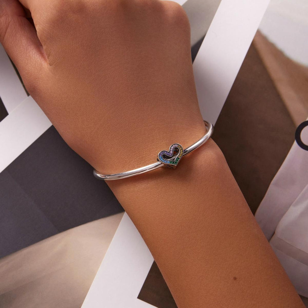 - 1 X 925 Sterling Silver Rainbow Heart Bead For Diy Bracelets Or Necklaces