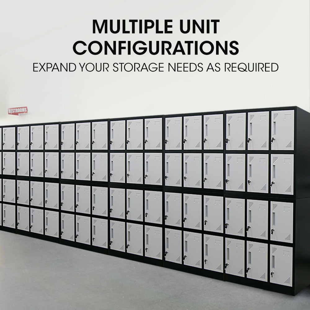Built tough the FORTIA #8482; 12 Door Locker has been constructed from solid cold rolled steel. Powder-coated in two-tone black and grey this 12 Door Locker system combines sleek design with quality construction.