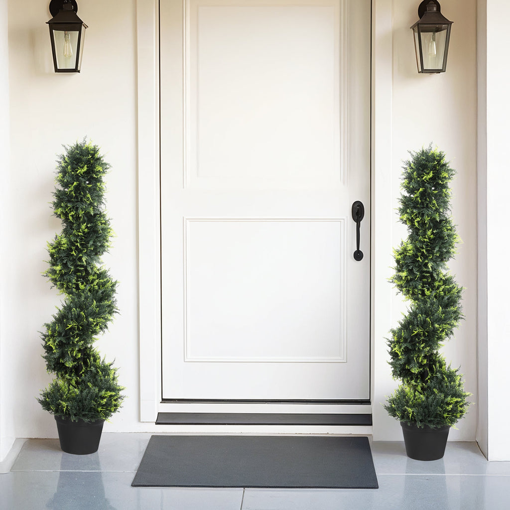 Tired Of Dealing With Wilting Plants? These Two Round Artificial Cedar Trees Provide The Perfect Solution With Their Unique Spiral Shape. The Lifelike Cedar Foliage Features Soft Deep Green Needles And A Striking Gradient Green Color That Adds Natural Depth And Variation Offering A Remarkably Realistic Look.