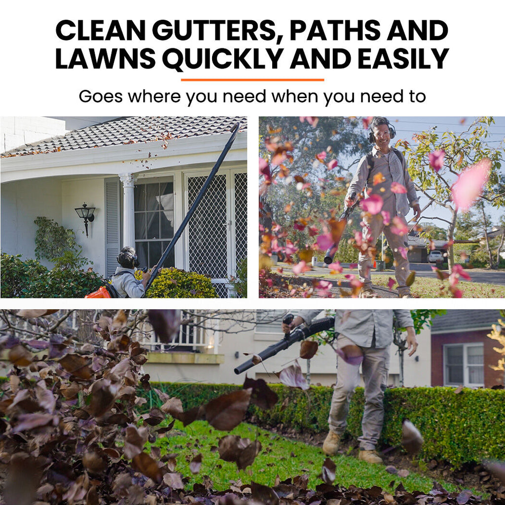 Thanks to the includedinterchangeable nozzles you can easily clear out everywhere from driveways to garden beds and tight crevasses. Asuper flexible air outletgives you optimal reach and with a sensitive trigger you can always apply just the right power to blow away even the biggest maintenance chores.