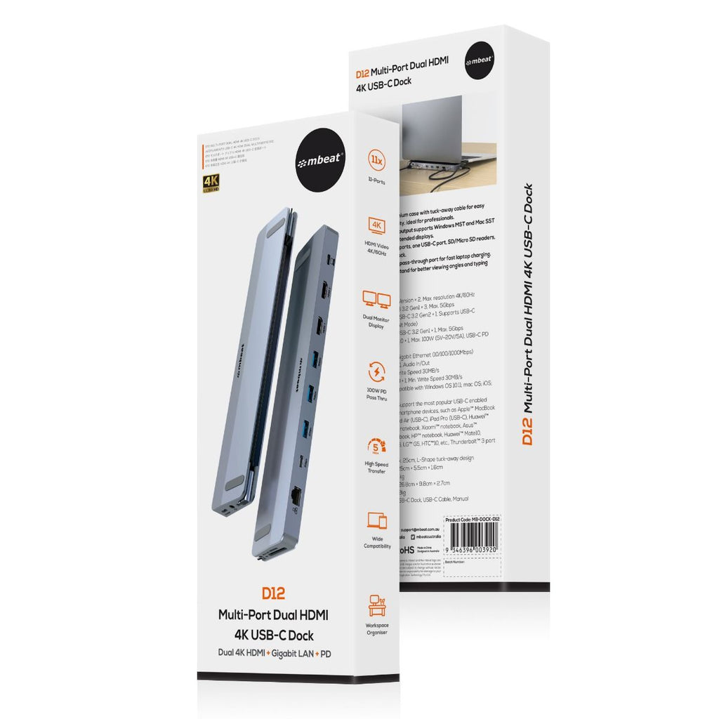 Mbeat D12 Multi Port Dual Hdmi 4K Usb Dock Usb Cables Hubs & Adapters