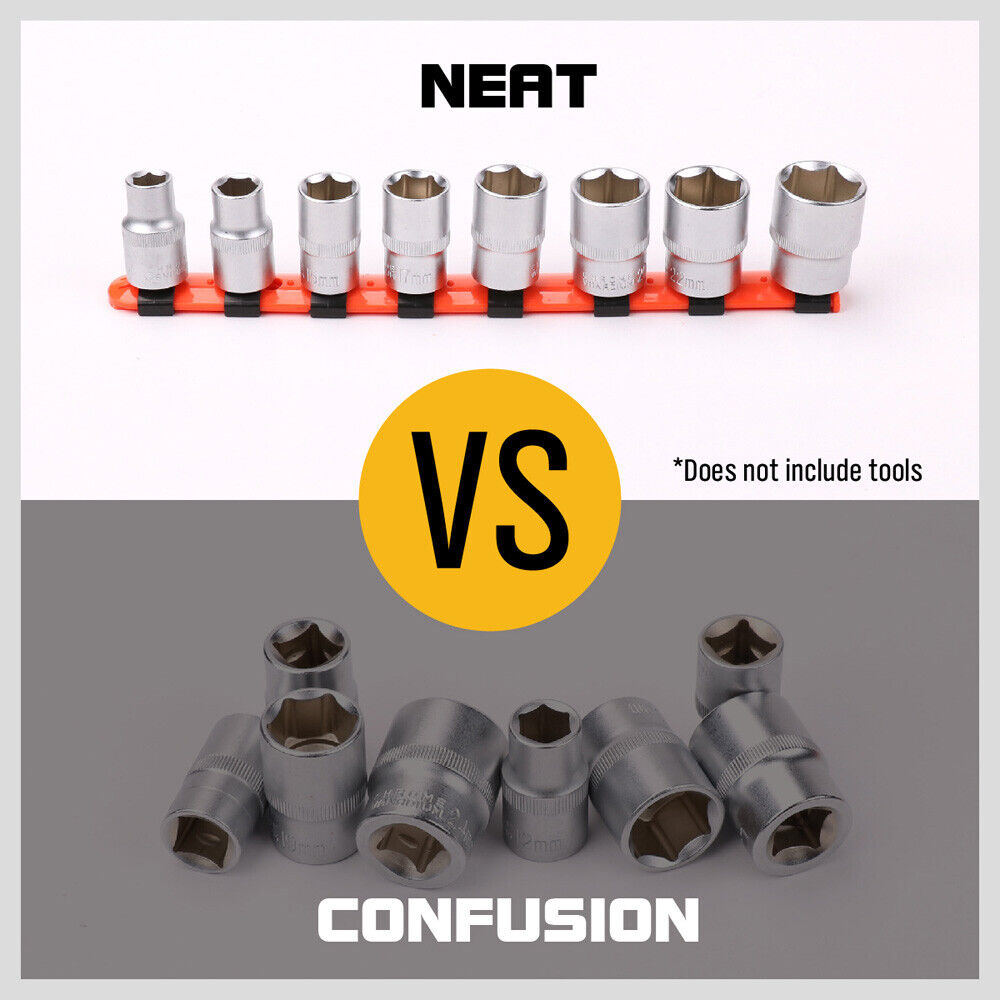 Horusdy 3Pc Mixed Socket Holder Set Storage Rails 1/2" 3/8" 1/4" Drive Grip Organiser Tool Storage Organisers
