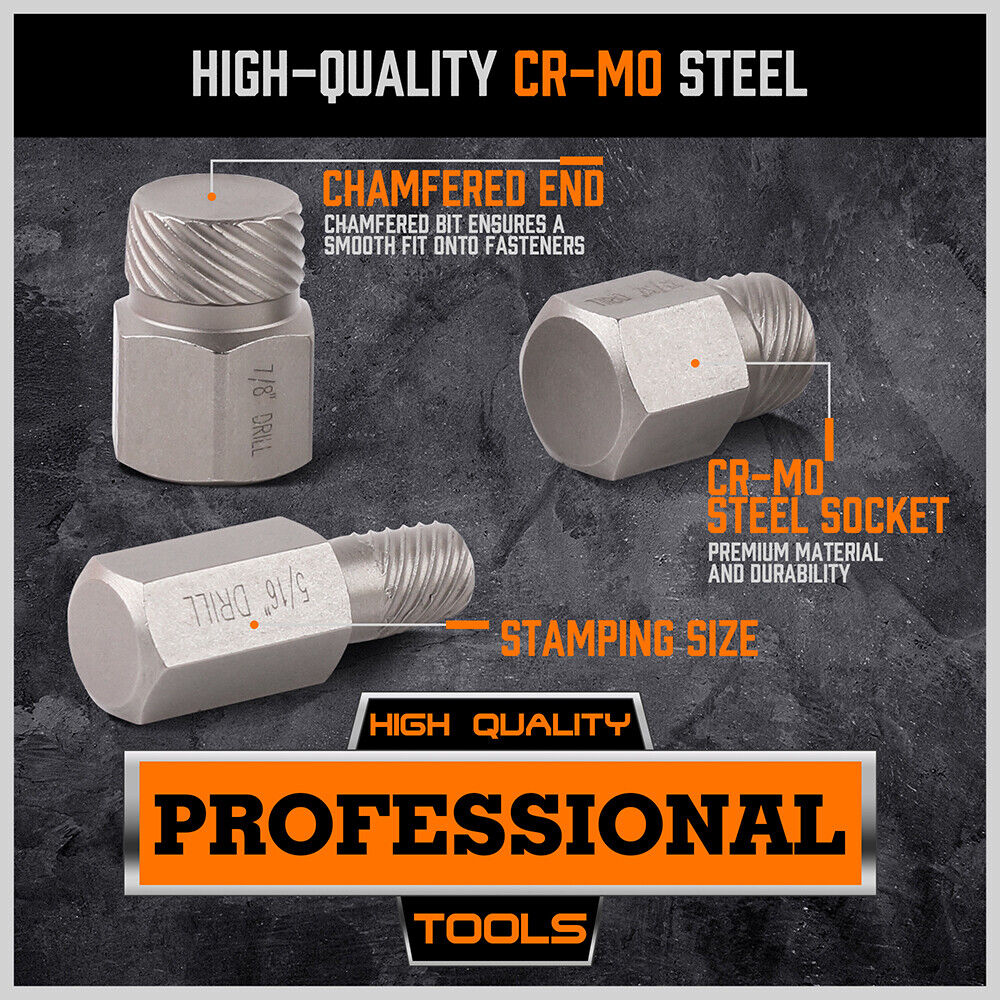• Premium Chrome Molybdenum Steel Grade Extractors Are Ideal For Removing Broken Screws Bolts Nuts Studs Fittings Threaded Pipes And Pins And Are Perfect For Any Mechanic's Toolkit.