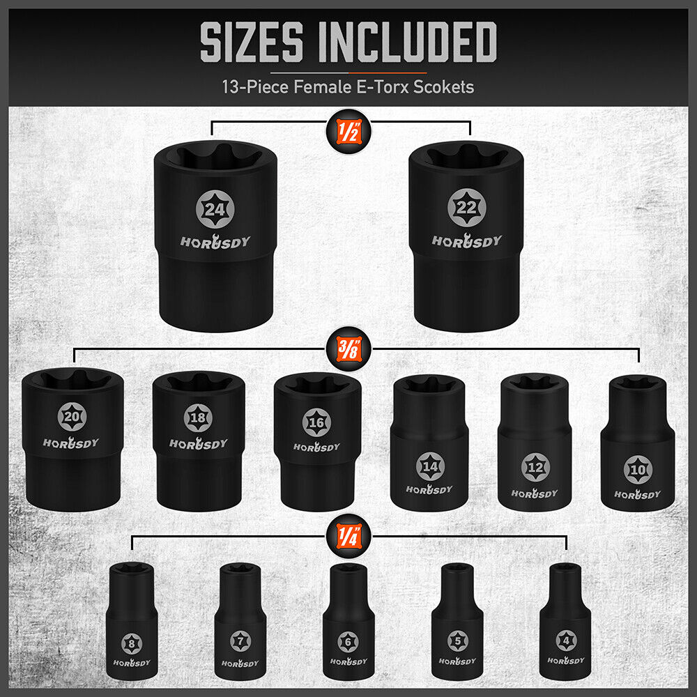 13-Piece Female E-Torx Socket:
