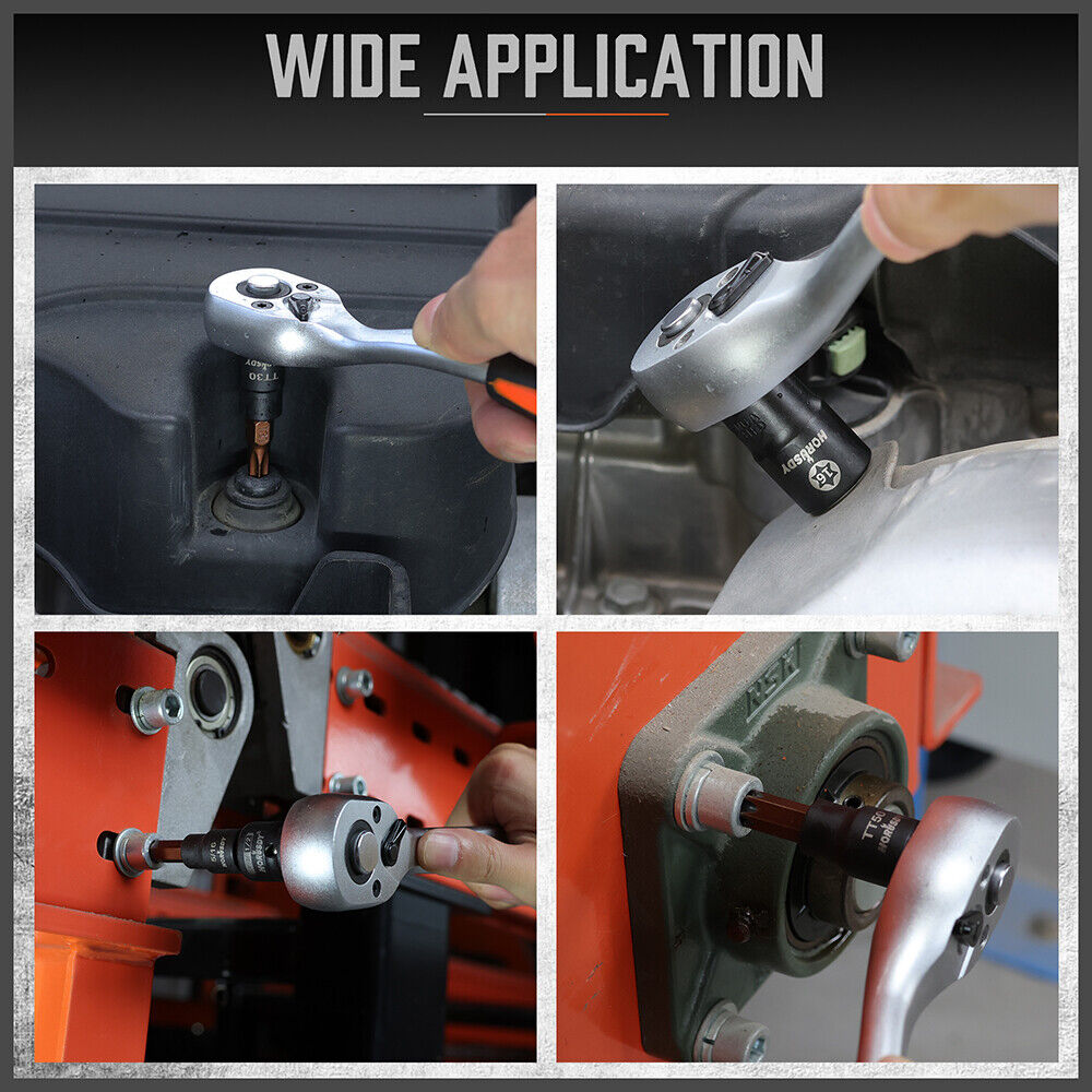 Versatile Compatibility- Perfect For Use With Manual Torque Tools Our Torx/Star Bit Set Includes All Necessary Sizes For Bicycles Cars Appliances Lawn Equipment Machinery And Any Other Tasks.