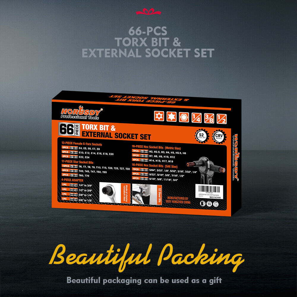 Premium Quality- Crafted From Heat-Treated Cr-V And S2 Alloy Steel Our 66-Piece Torx Bit Socket Set Ensures Durability And Corrosion Resistance Ideal For Any Automotive Mechanic Or Diy Enthusiast.