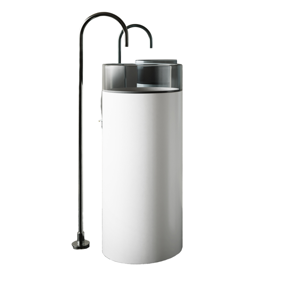Solid Surface White Pedestal With Translucent Resin Stone Basin.
