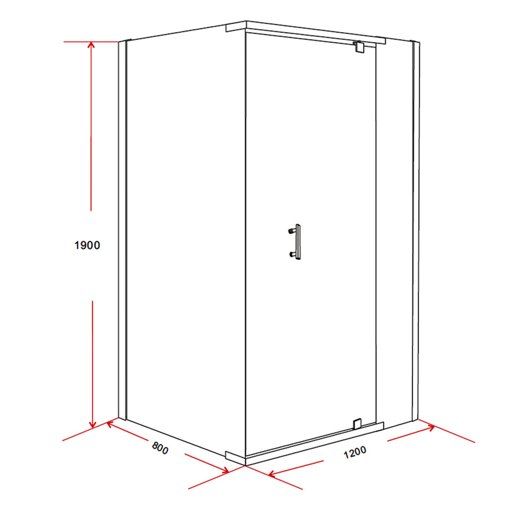 - 1 X Shower Screen 1200X800x1900mm Framed Safety Glass Pivot Door