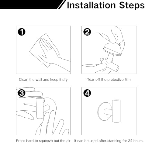 • Easy to Install: Simply clean the wall surface peel off the protective film and press the hook firmly for a few seconds. For best results allow 24 hours before use.