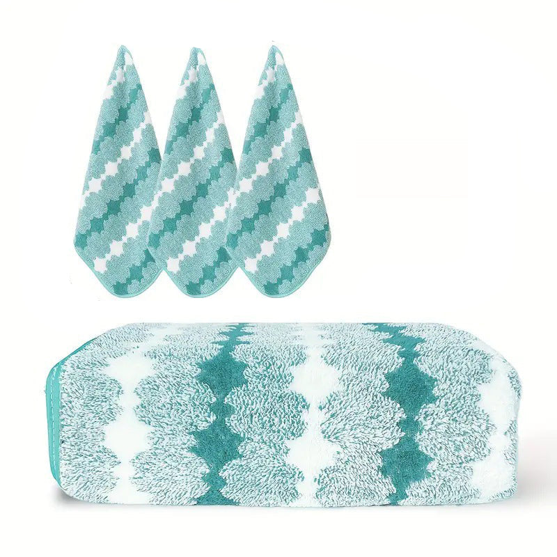 Cyan Premium Coral Fleece Towel Set 1 Bath (88X170cm) + 3 Hand Towels (35X35cm) Soft Absorbent And Quick Drying Towels & Washcloths