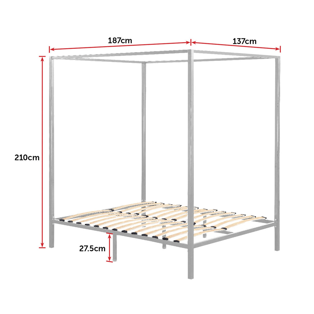 P>P>The Bed's Sleek Cream Frame Is Trendy And Modern Making It A Perfect Choice For The 21St Century Home. But If You Prefer A More €˜Old-Style' Romantic Look Its Modest Design Means That It Is Easily Dressed With Drapes In Order To Achieve The Style You Want. What's More The Frame's Neutral Cream Allows It To Fit In With Any Colour Scheme - Versatility At Its Best.P>P>As It Is Double Size The Bed Has Plenty Of Space Providing The Luxurious Comfort That You Deserve After A Long Day. The Bed's Fifteen Slats Provide Flawless Support For A Double Mattress Without The Need For Any Additional Foundation.P>P>It Is Also An Ideal Choice For Those Who Want A Sturdy Four-Poster Bed That Will Last. It's Strong Metal Frame And Side Rails Guarantee That It Is Both Stable And Durable.P>P>Whatever Your Design Scheme This Bed Has All The Desirable Features Of A Four-Poster Bed €“ A Purchase You Won't Regret.P>P>Specifications:Ul>Li>Steel Construction With Powder-Coated Finish In CreamLi>Post Leg Diameter: 30301.0Mm Height: 27.5CmLi>Bed Base Crossbar And Side Rails: 30 X 40 X 1.00 MmLi>Steel Tube On The Four Corners: 40 X40 X 1.2MmLi>Assembled Dimensions: 137Cm X 187Cm X 210CmLi>Fits Standard Australian Sized Double Mattress Of 137Cm X 187Cm Not IncludedLi>Weight Capacity: 300KgLi>Assembly Required/Ul>P>Attributes: