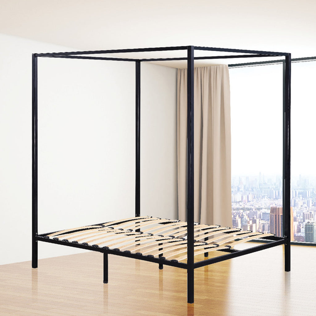 P>P>The Bed's Sleek Black Frame Is Trendy And Modern Making It A Perfect Choice For The 21St Century Home. But If You Prefer A More €˜Old-Style' Romantic Look Its Modest Design Means That It Is Easily Dressed With Drapes In Order To Achieve The Style You Want. What's More The Frame's Neutral Black Allows It To Fit In With Any Colour Scheme - Versatility At Its Best.P>P>As It Is Double Size The Bed Has Plenty Of Space Providing The Luxurious Comfort That You Deserve After A Long Day. The Bed's Fifteen Slats Provide Flawless Support For A Double Mattress Without The Need For Any Additional Foundation.P>P>It Is Also An Ideal Choice For Those Who Want A Sturdy Four-Poster Bed That Will Last. It's Strong Metal Frame And Side Rails Guarantee That It Is Both Stable And Durable.P>P>Whatever Your Design Scheme This Bed Has All The Desirable Features Of A Four-Poster Bed €“ A Purchase You Won't Regret.P>P>Specifications:Ul>Li>Steel Construction With Powder-Coated Finish In BlackLi>Post Leg Diameter: 30301.0Mm Height: 27.5CmLi>Bed Base Crossbar And Side Rails: 30 X 40 X 1.00 MmLi>Steel Tube On The Four Corners: 40 X40 X 1.2MmLi>Assembled Dimensions: 137Cm X 187Cm X 210CmLi>Fits Standard Australian Sized Double Mattress Of 137Cm X 187Cm Not IncludedLi>Weight Capacity: 300KgLi>Assembly Required/Ul>P>Attributes: