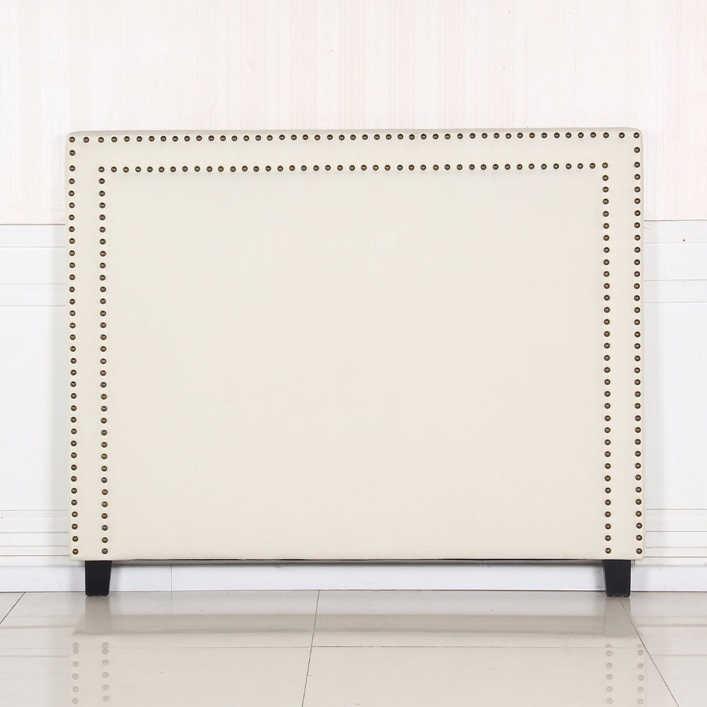 Bed Head Queen White Headboard Upholstery Fabric Studded Buttons Headboards & Footboards