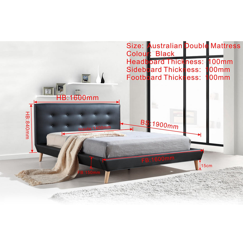 Double Pu Leather Deluxe Bed Frame Black Double Bed Frames