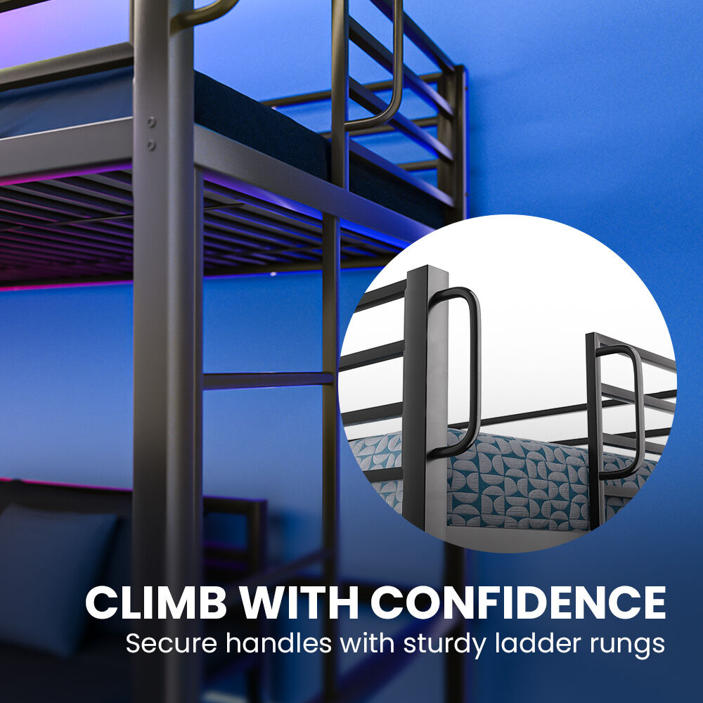Clean Lines. No Fuss. Its Sturdy Metal Frame Suits Any Room Style While Both Levels Fit Standard Single Mattresses - No Custom Sizes No Hassle.
