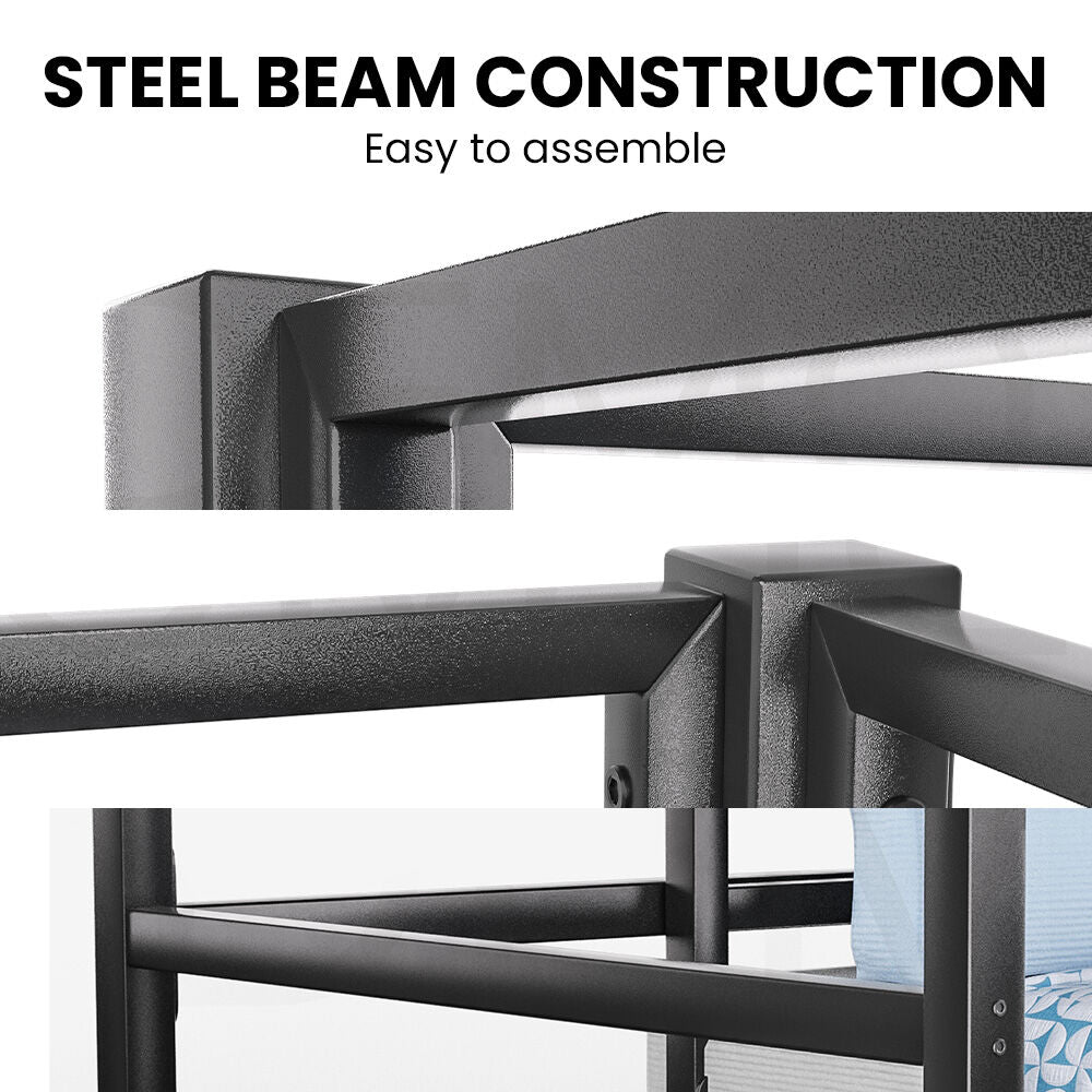 Li> Product Type: Bed Frame Li> Brand: Kingston Slumber Li> Colour: Matte Grey Li> Body Material: Metal Li> Compatible Mattress Size: Single Li> Maximum Mattress Height Top: 15Cm Li> Maximum Top Bunk Weight Limit: 120Kg Li> Maximum Bottom Bunk Weight Limit: 120Kg Li>Note: Bed Frame Only Not Mattresses Linen Or Toys Li>Note: Requires Assembly