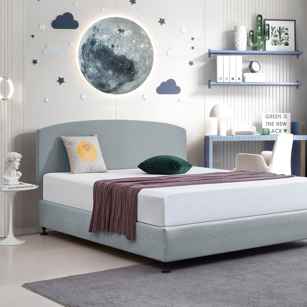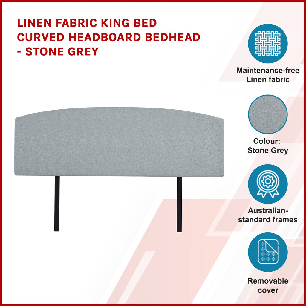 Linen Fabric King Bed Curved Headboard Bedhead Stone Grey Headboards & Footboards