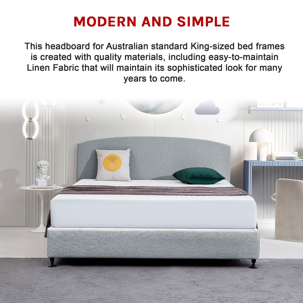 Br> This Headboard For Australian Standard King-Sized Bed Frames Is Created With Quality Materials Including Easy-To-Maintain Linen Fabric That Will Maintain Its Sophisticated Look For Many Years To Come. This Particular Model Comes With Simple Linen Fabric That Will Blend Seamlessly With A Wide Variety Of Bed Frames And Other Bedroom Furniture.