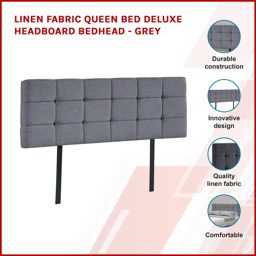 Linen Fabric Queen Bed Deluxe Headboard Bedhead Grey Headboards & Footboards