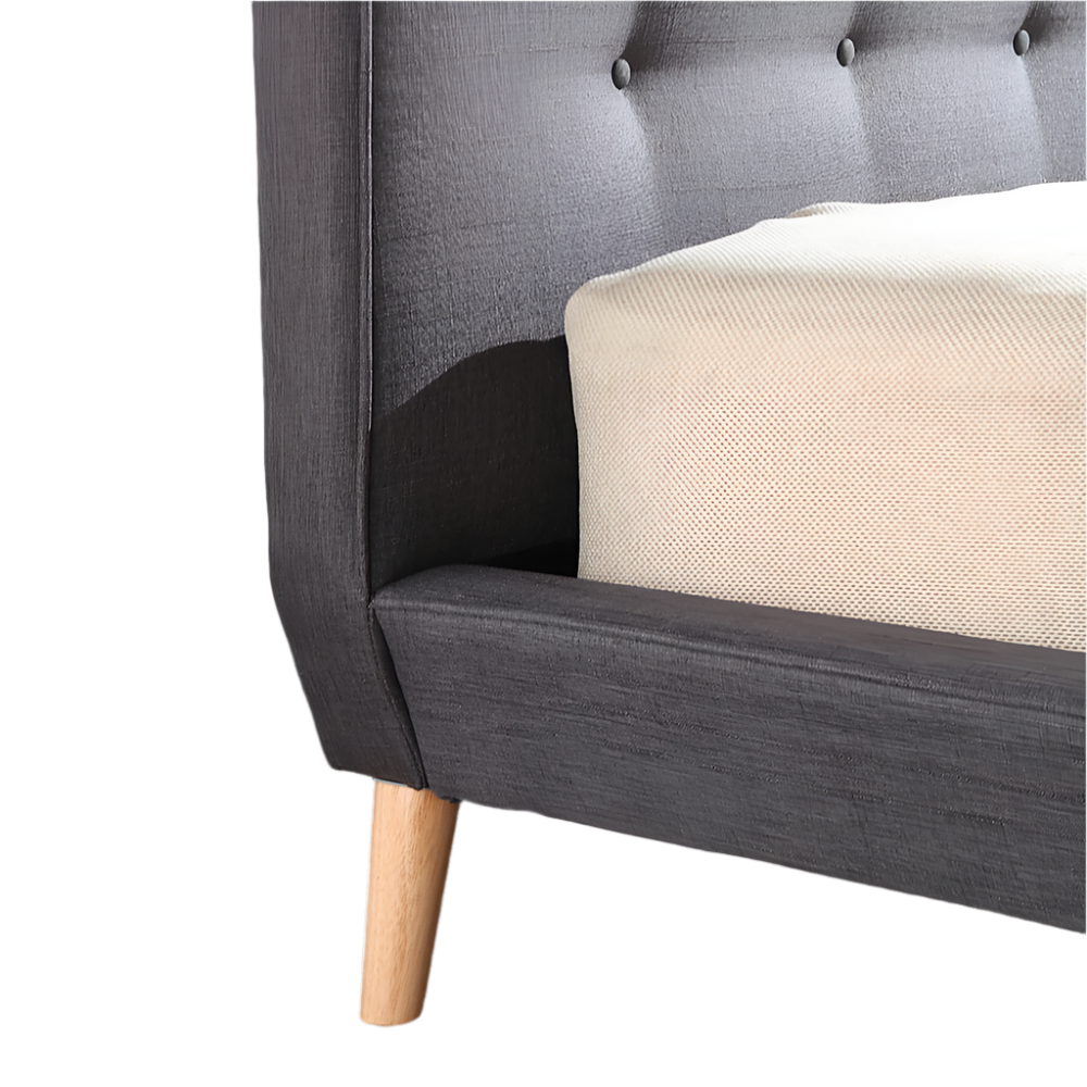 Features Of The Palermo Linen Fabric Queen Bed Frame And Button Tufted Headboard Grey: