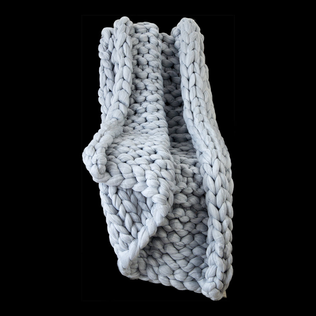 Hand Knitted Chunky Blanket Thick Acrylic Yarn Home Decor Throw Rug Grey Blankets