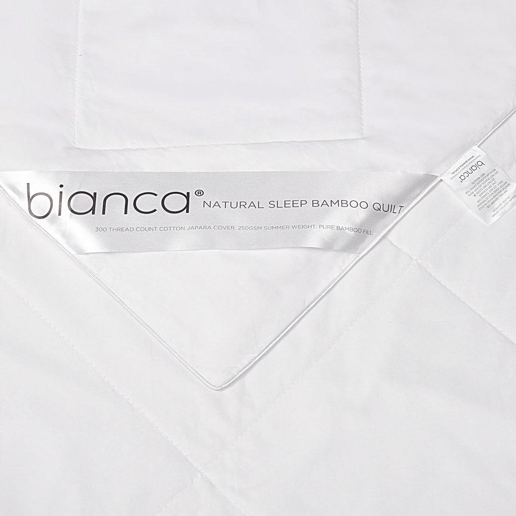 The 250Gsm Natural Sleep Bamboo Summer Quilt By Bianca Contains 250Gsm Of Pure Bamboo Fill And Is Encased In A Luxurious Cotton Japara Cover. It Features A Diamond Quilting Pattern And Is Finished With A Satin Piped Edge. This Quilt Is Durable Breathable Retains Loft And Is Sure To Keep You Cool In Summer. An Easy-Care Quilt That Is Machine Washable.