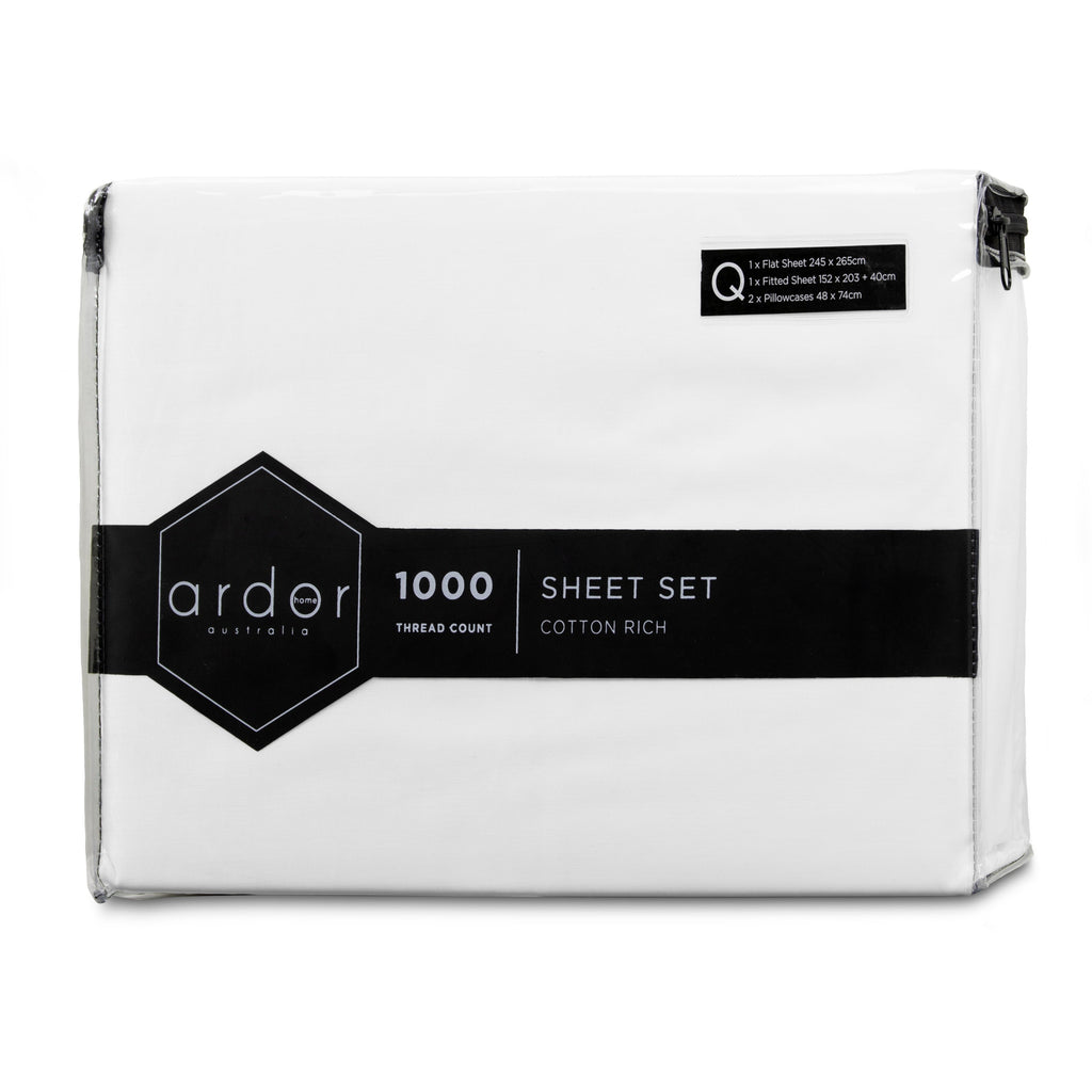 1000Tc Cotton Rich Sheet Set King Single White Sheets
