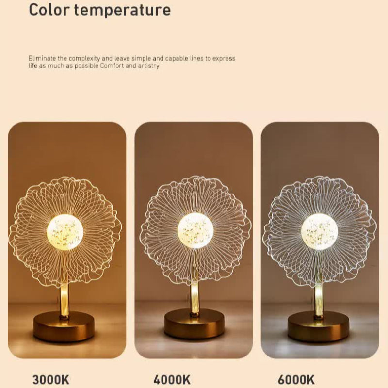 Elosung Flower Shape Luxury Acrylic Table Lamp Modern Usb Powered Night Light | Decorative For Bedroom Living Room And Bedside Compact Design With 3 C