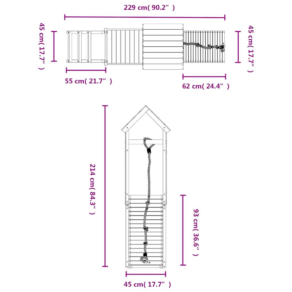 Do You Want To Give Your Children The To Play At Home This Playhouse Transforms Your Backyard Into A Playground For Imaginative Adventures! Durable Material: This Climbing Frame With Slide Is Made Of Solid Pine Wood. Solid Pine Wood Is A Beautiful Natural Material. Pine Wood Has A Straight Grain And The Knots Give The Material Its Signature Rustic Look. Sturdy And Stable Frame: The Frame Of The Garden Climbing Frame Ensures Sturdiness And Stability. Multi-Activity Centres: The Climbing Frame Features A 90 Cm Height Platform And Stands Out With A Ladder A Sandpit And Climbing Wall With A Rope. Your Little Ones Can Also Invite Their Friends To Join The Fun. Thoughtful Design: The Surrounding Railings Are Designed To Ensure The Safety Of Children During Their Happy Play. Also The Roof Provides Shade For Your Children On Hot Summer Days. Endless Fun: This Fun-Filled Outdoor Playhouse Is The Perfect Way For Your Children And Their Friends To Enjoy Entertainment Have More Interactive Time And Make Memories For You And Your Children! Warning: Only For Domestic Use Outdoor Use Not Suitable For Children Under 3 Years Recommend User Age: 3-8 Years Old Maximum Per User Weight: 45 Kg Note: The Product Shall Be Anchored In Order To Reduce tipping Hazards. The Anchors Are Sold Separately. Good To Know: To Make Assembly As Easy As Possible Each Product Is Delivered With A Manual.