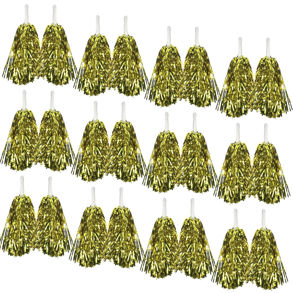 Yellow Metallic Cheerleading Pom Poms Set Of 12 With Easy Grip Handles Australia Day Other Costume Accessories