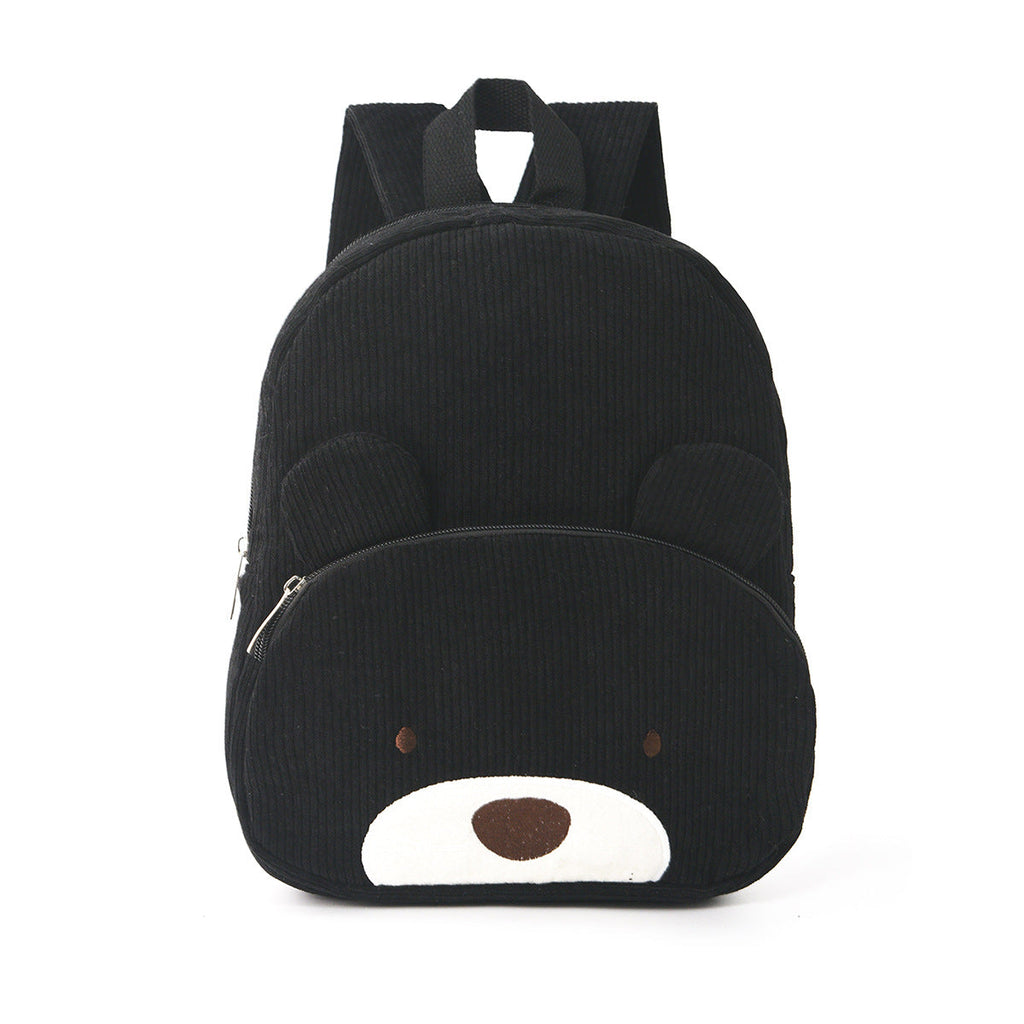 Cute Black Bear Backpack Soft Corduroy Material With Adjustable Straps Backpacks & Bags
